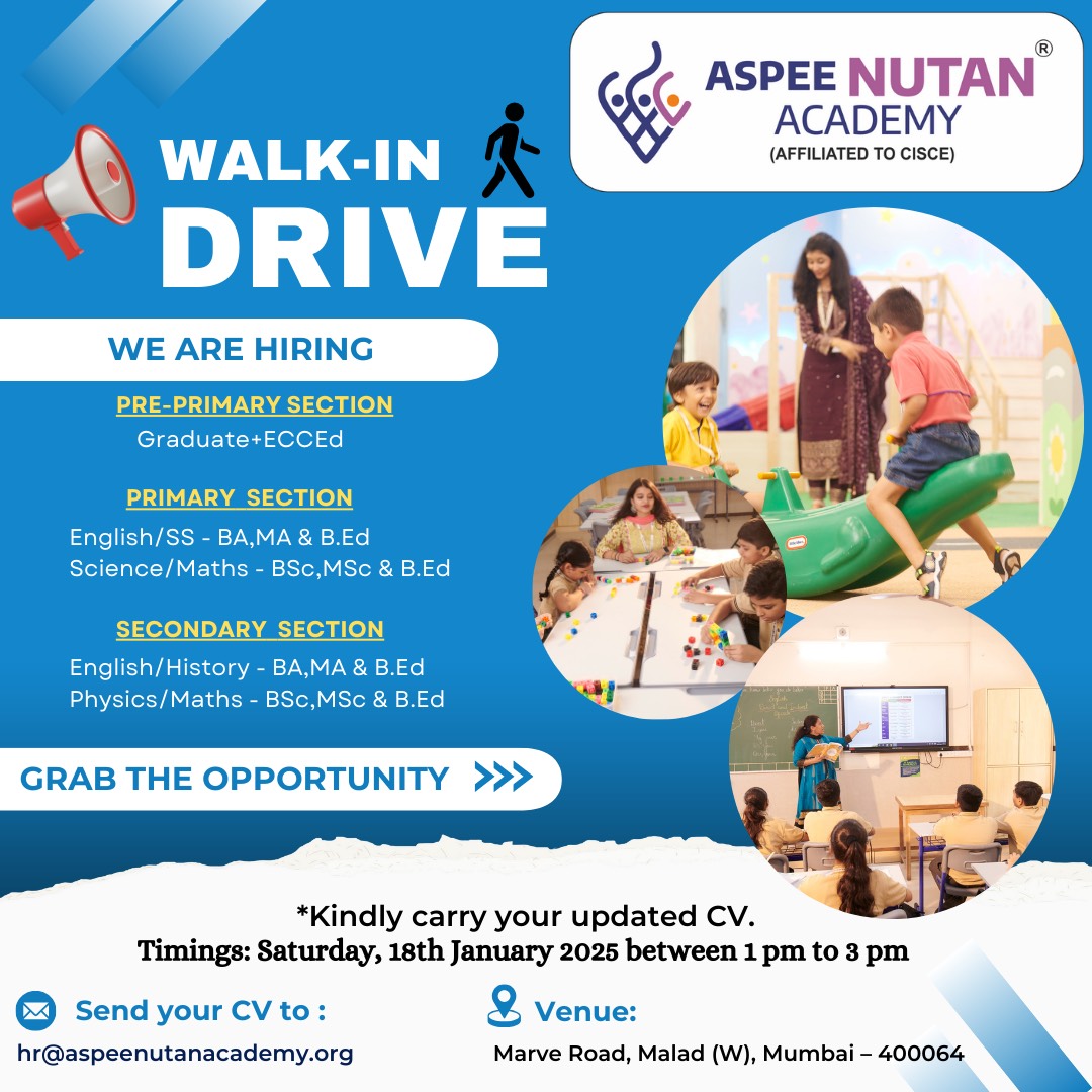 Vacansies in School,Work With Aspee Nutan Academy